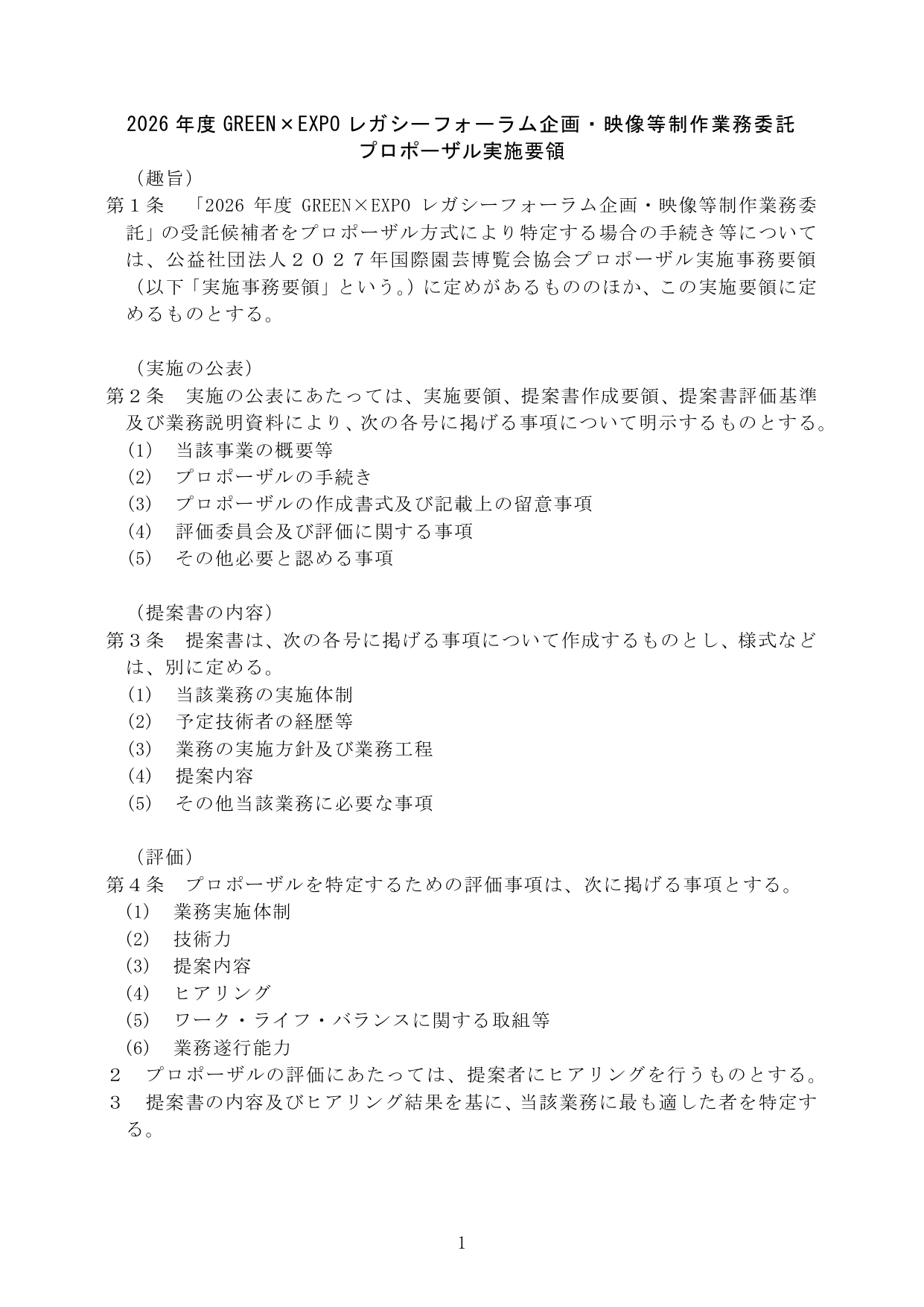 - 業務名:2026年度GREEN×EXPOレガシーフォーラム企画・映像等制作業務委託